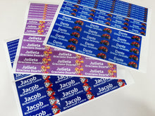 Adhesivos personalizados para marcar los útiles de tus hijos, puedes pedirlos con la imagen que desees