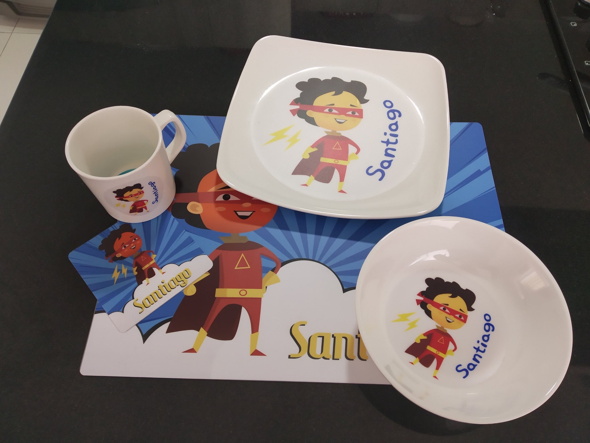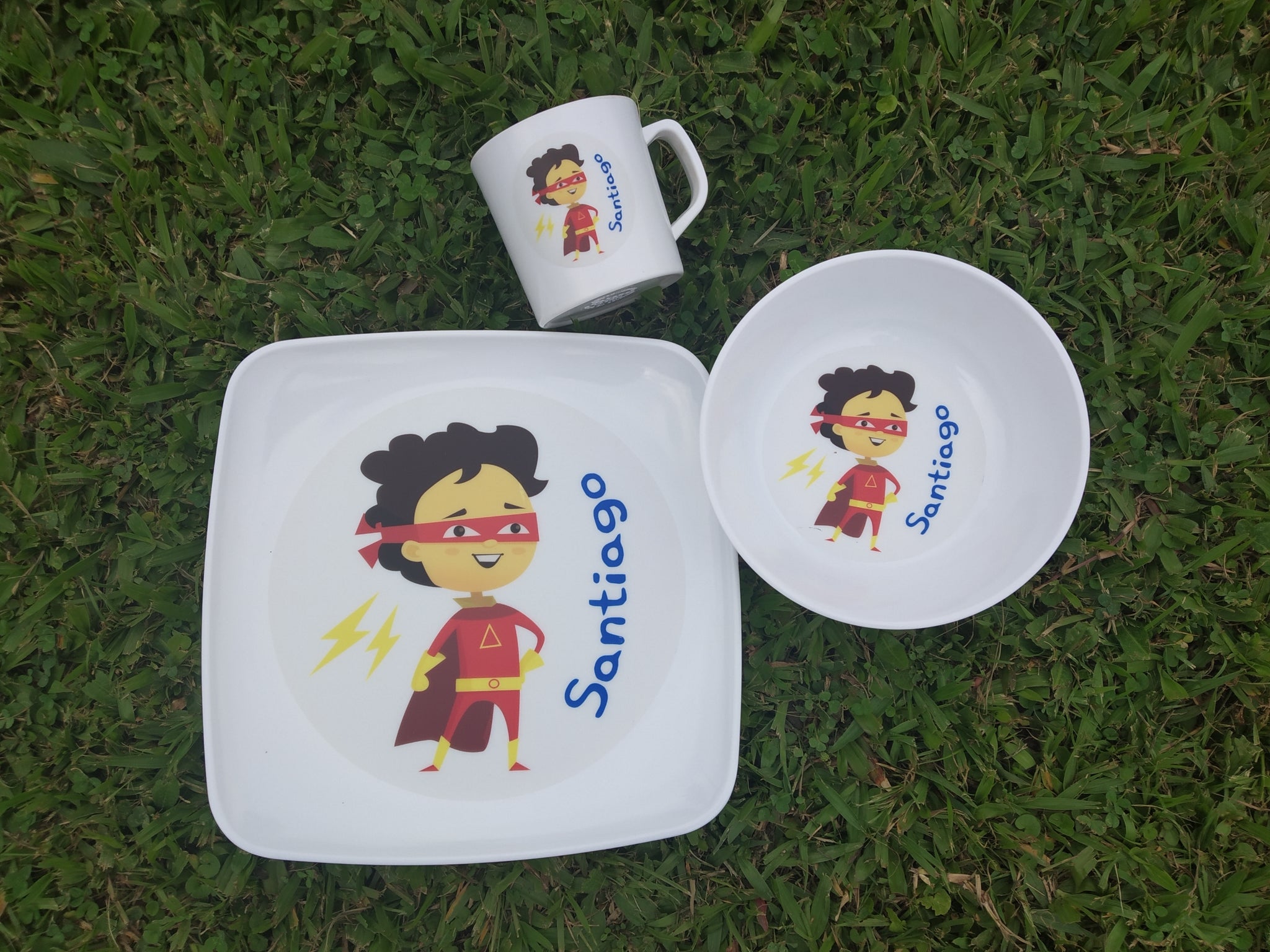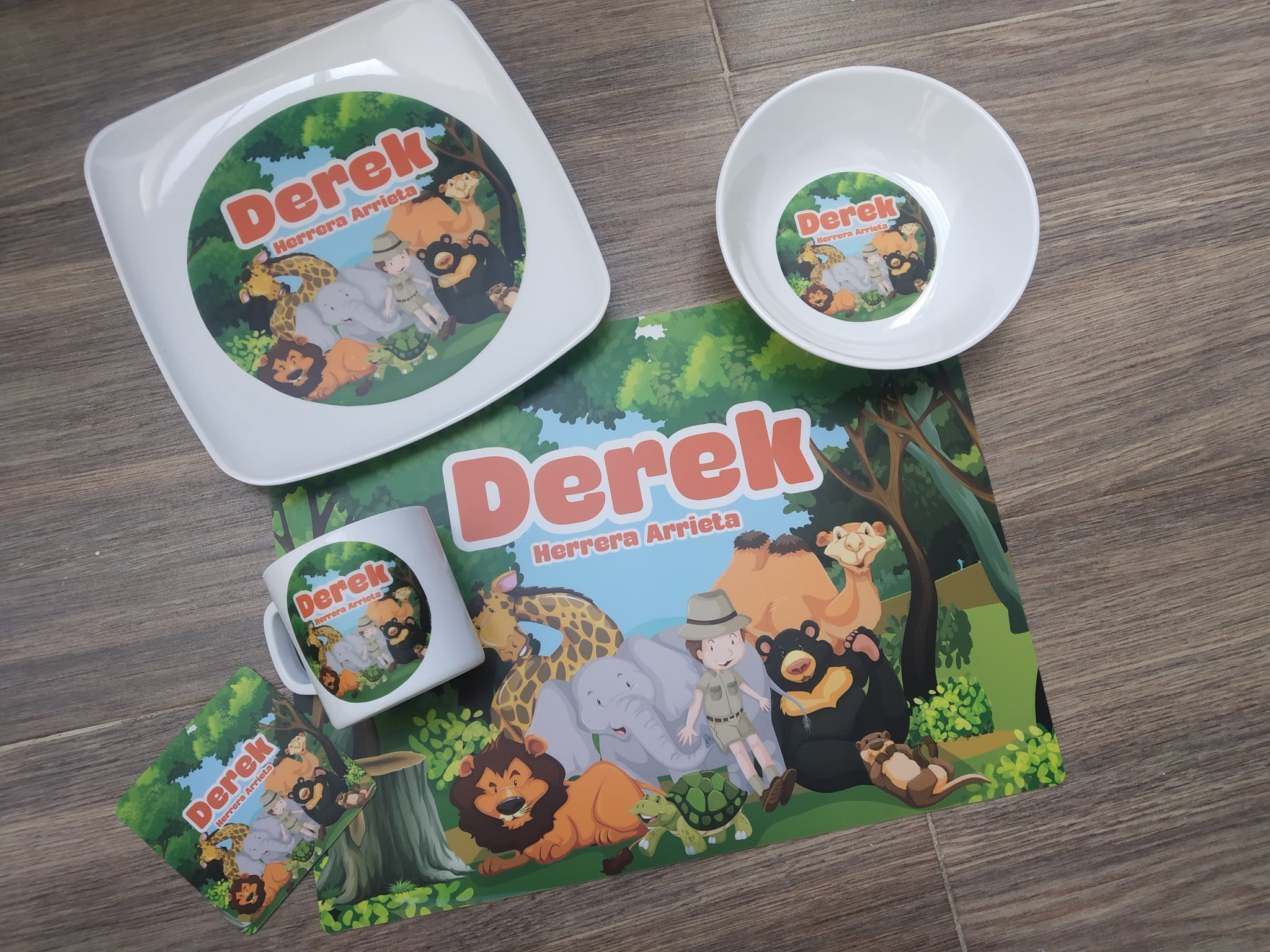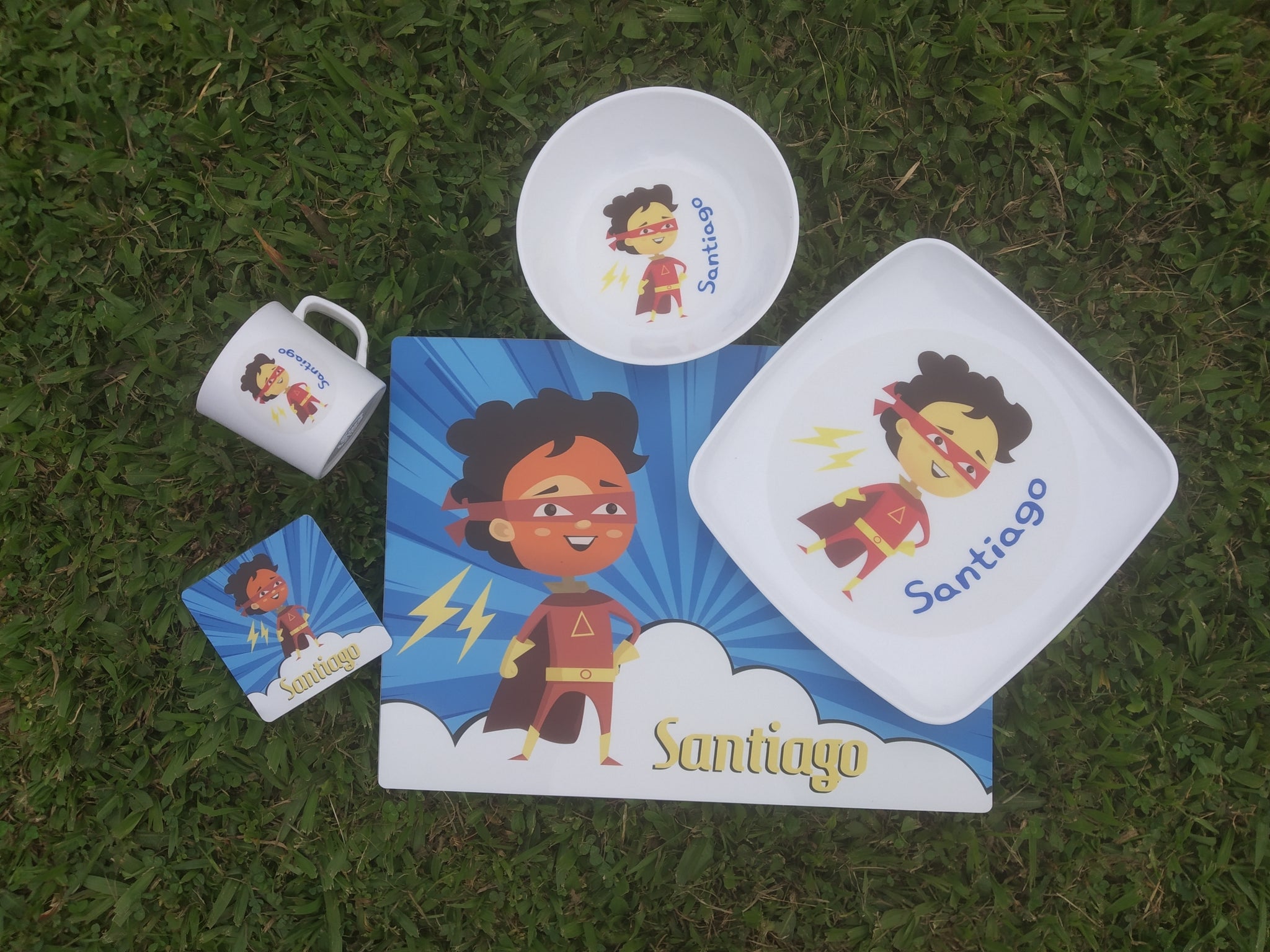 Material: La vajilla es en melamina (La melamina es un compuesto sintético que se utiliza a menudo en vajilla y algunos muebles por su practicidad. Es conocida porque los platos resultan livianos, fáciles de lavar) resistente el calor y los portavasos e individuales en poliestireno calibre 15