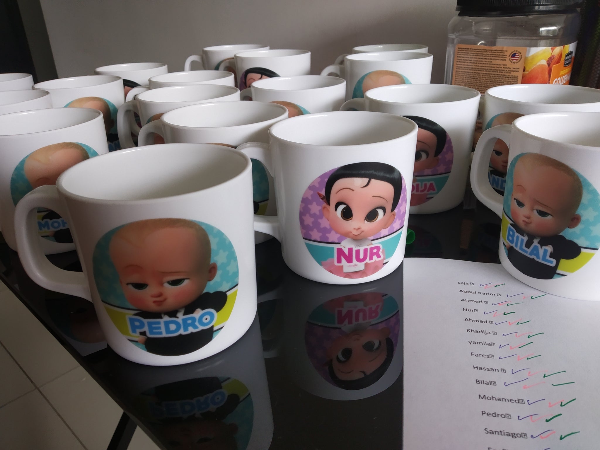 Cada vajilla viene personalizada con un adhesivo de alta resistencia y adherencia